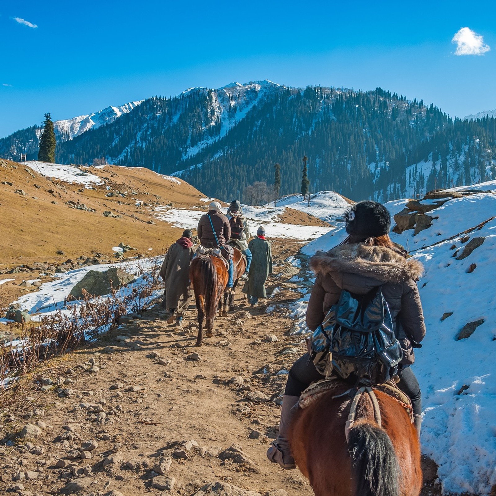 - Enjoy scenic views en route with pine forests and snow-clad peaks.